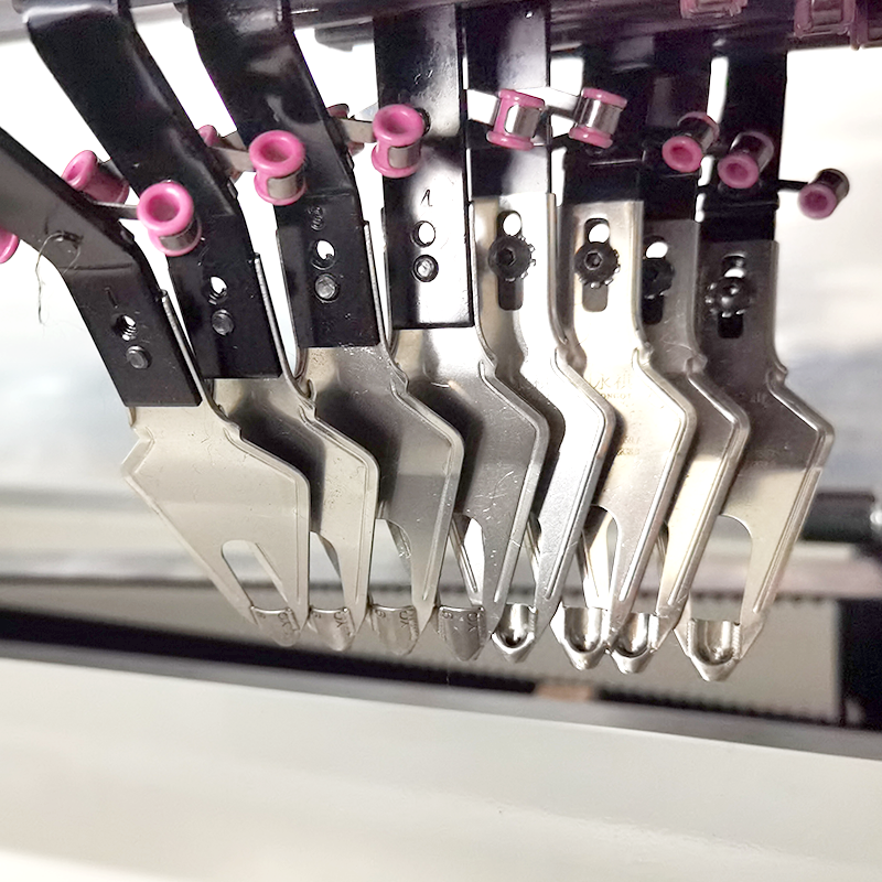 dikendalikan dengan motor penggerak, disesuaikan dengan pakaian rajut yang berbeda, hingga berbagai hasil bentuk dan pola. |